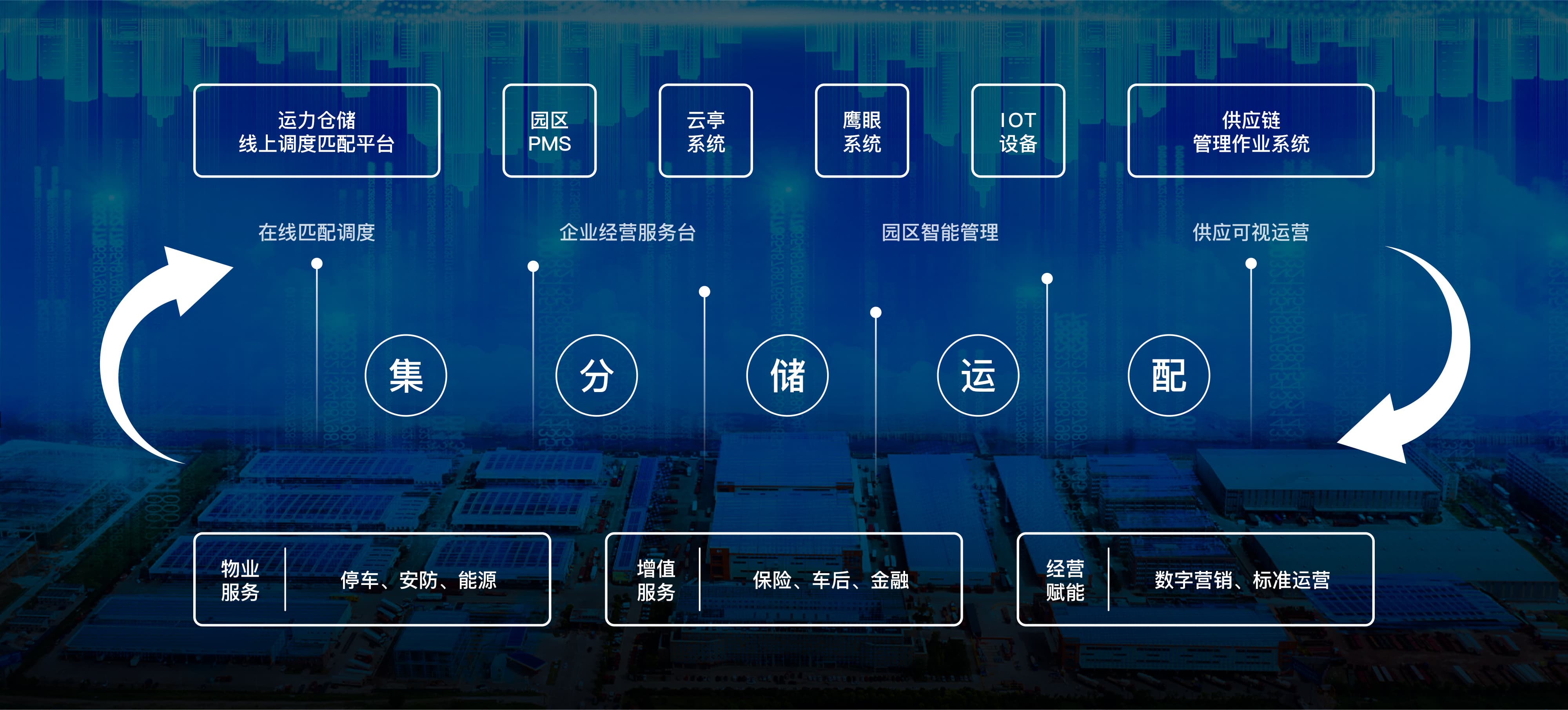 定位于区域分拨中转配送中心,引进合作伙伴,打造区域分拨配送网络,实现货物集散的规模化运营,提升物流效率